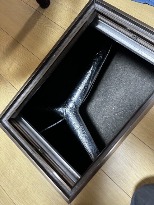 本体から分岐した断熱ダクトを床下へ配管し、Y字分岐で効率的に各室へ送風。
