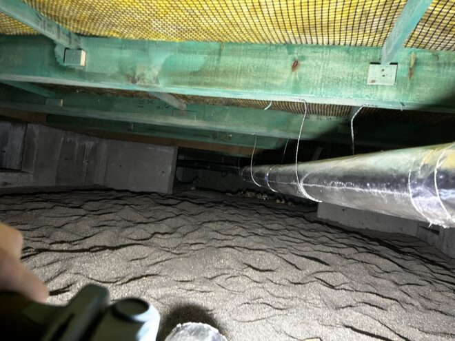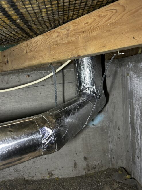 床下空間を活用した温風ダクト施工事例。